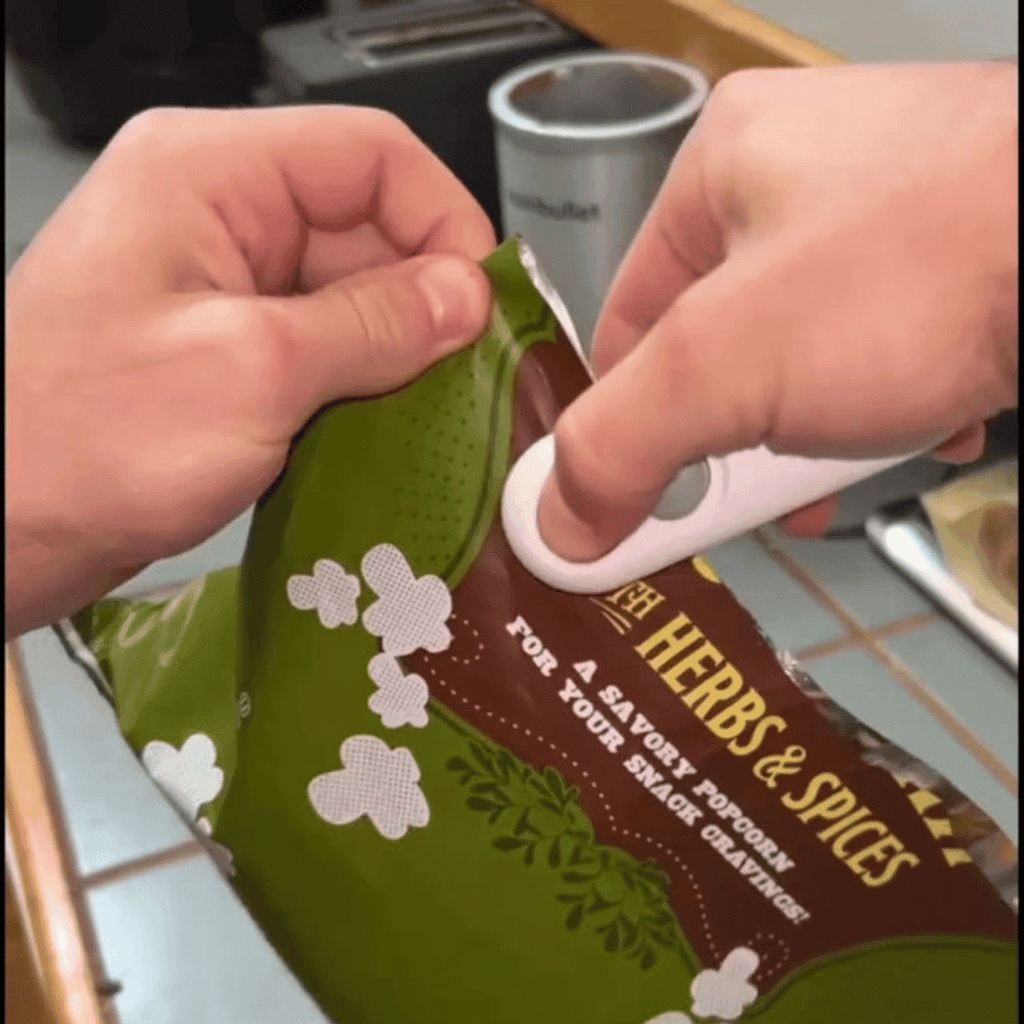 É só pressionar e deslizar sobre o plástico para selar. Pronto, embalagem vedada em segundos!